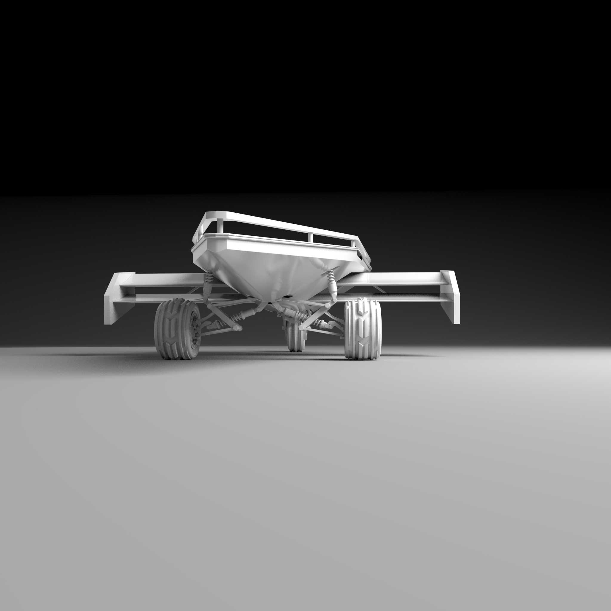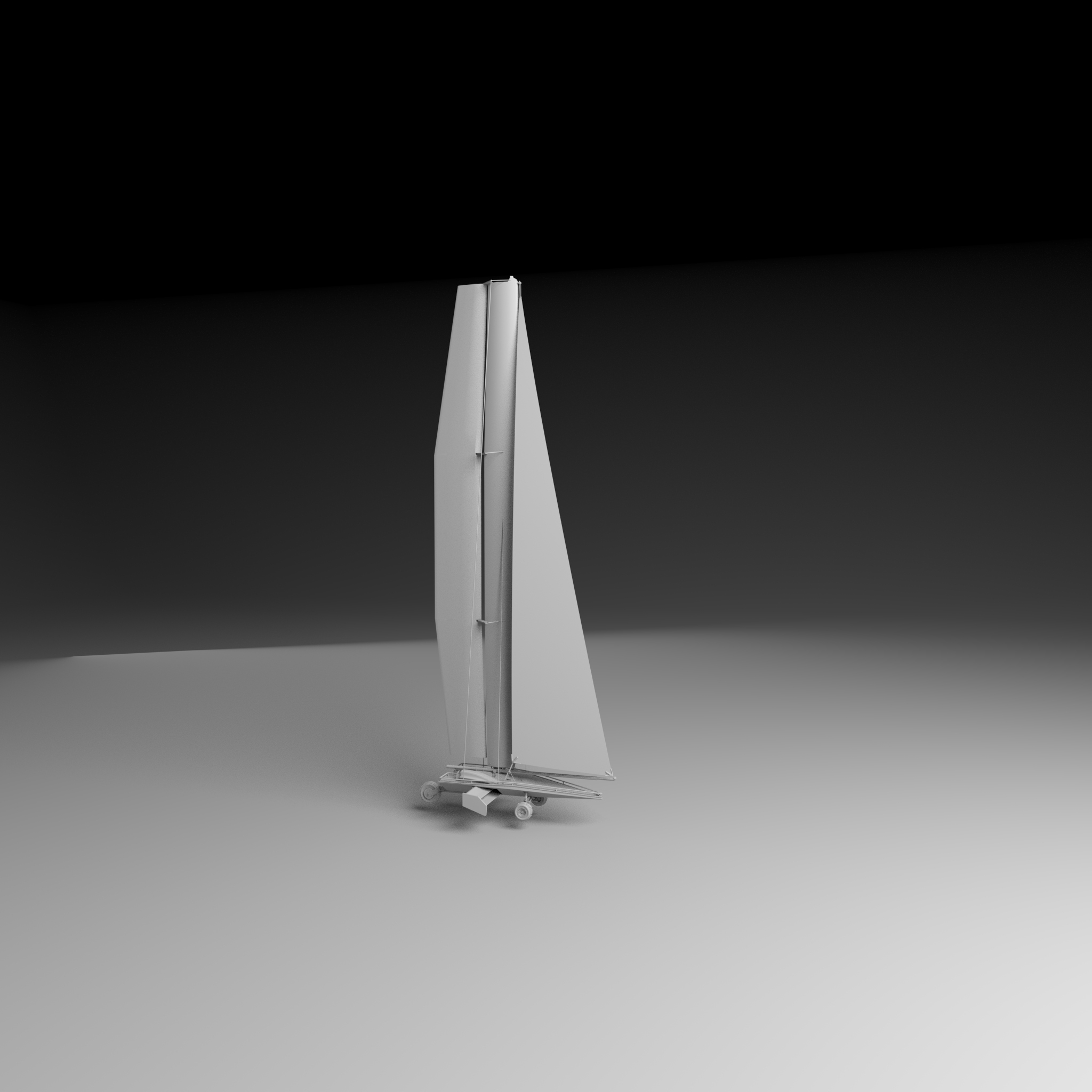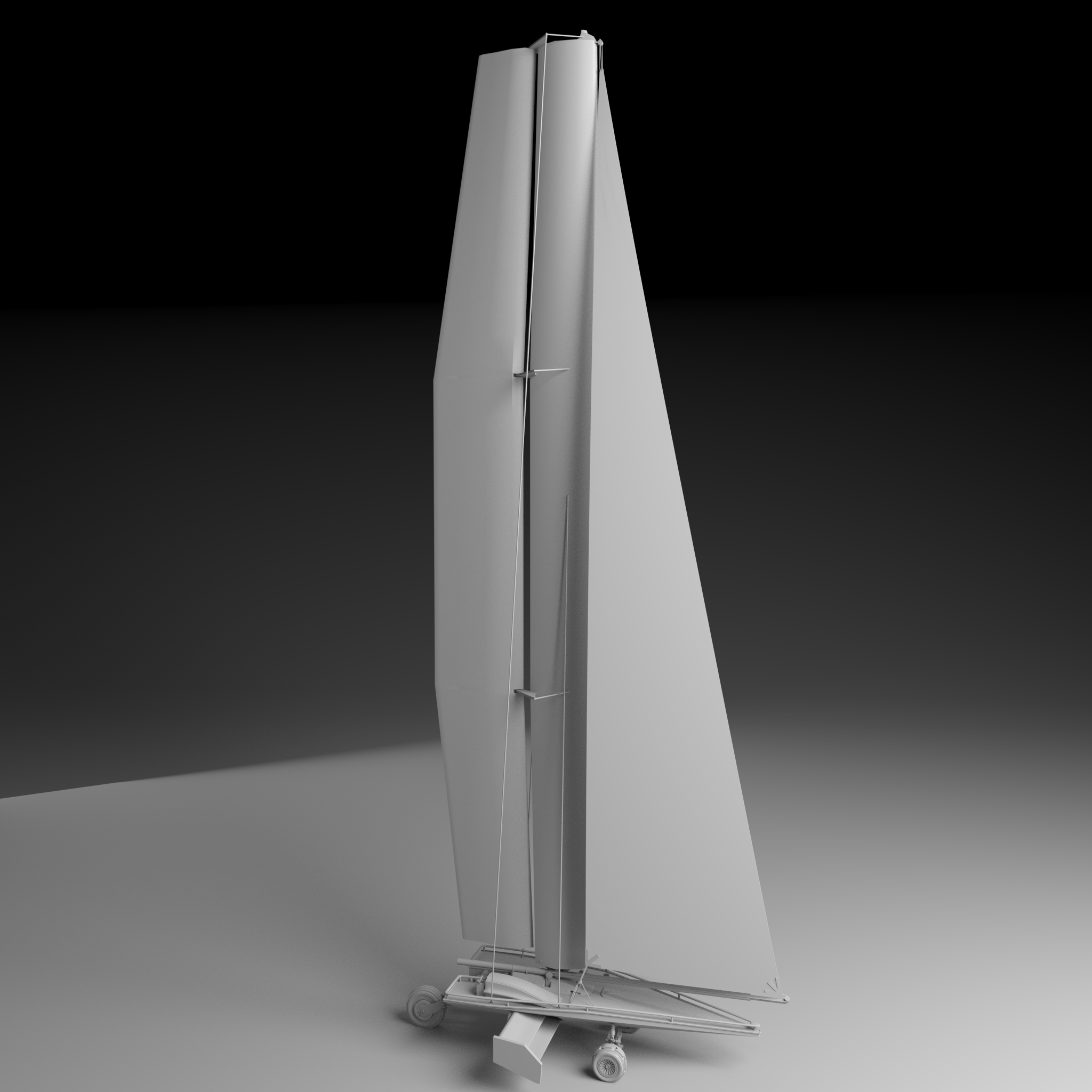 The sand runner is a sail powered car used in the sandy desert dunes. It uses a wing sail to generate it's momentum and uses it's resultant force to generate lift and prevent the craft from flipping over. It also makes use of an inverse airfoil wing to generate downforce which aids in its stability. At the front is two wheels with a custom designed di-axial pushrod suspension for lateral and vertical shock absorption. The rear wheel, along with the articulating wing sail, are used to steer. It is designed to be piloted by a single occupant but can hold up to ten on its top deck.