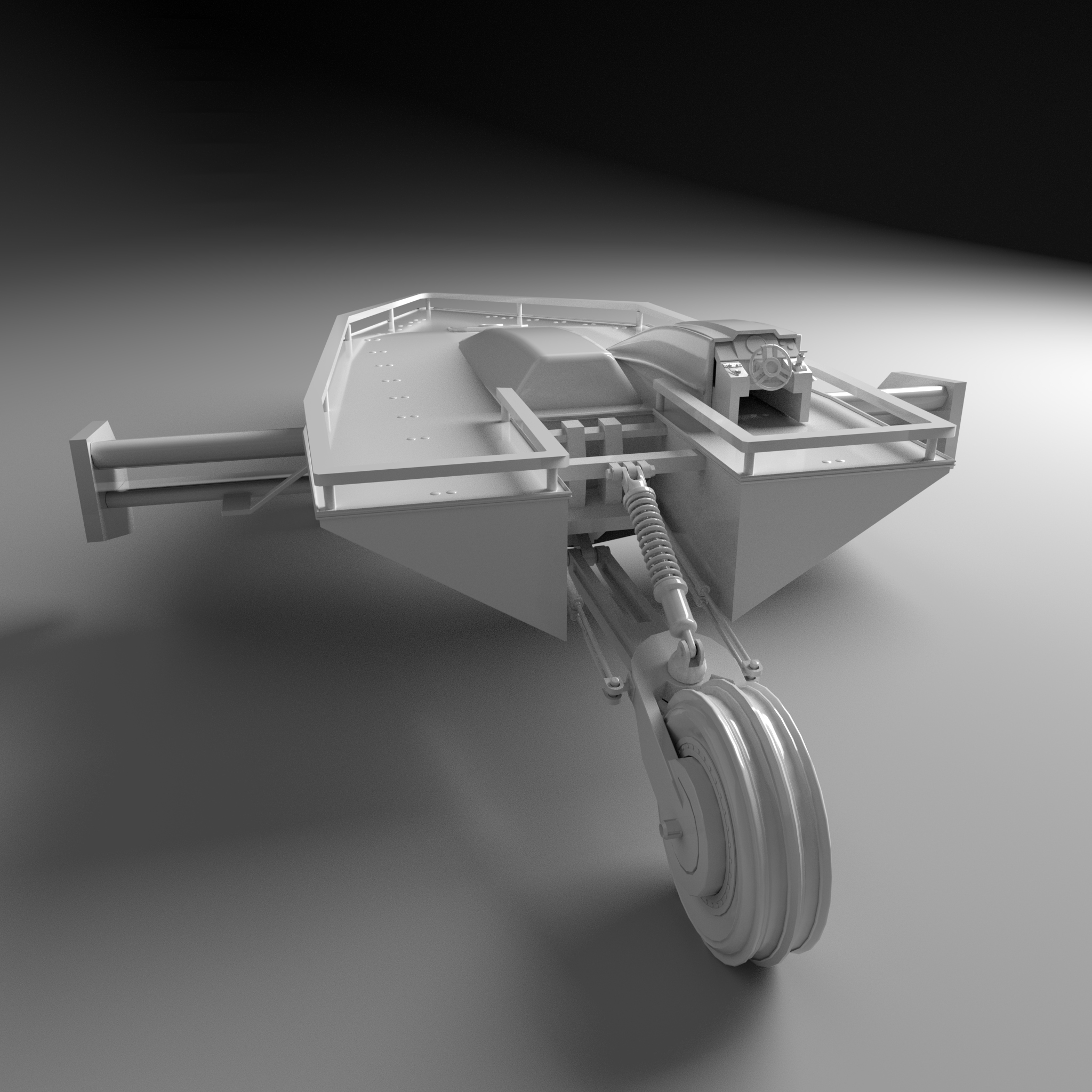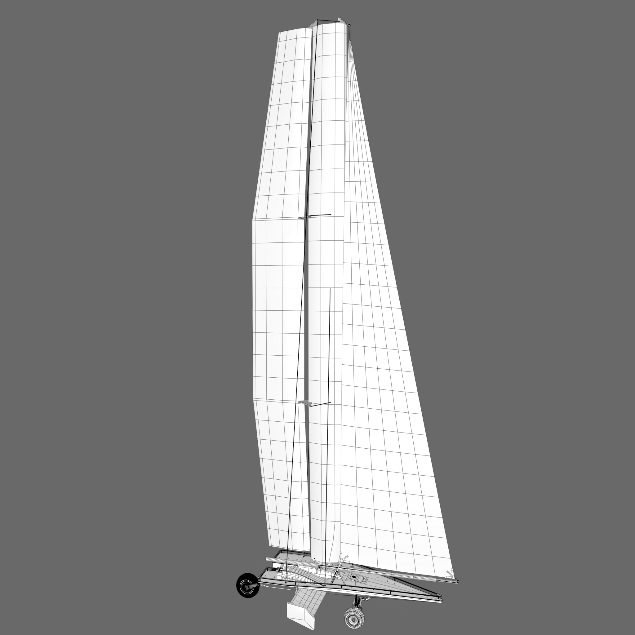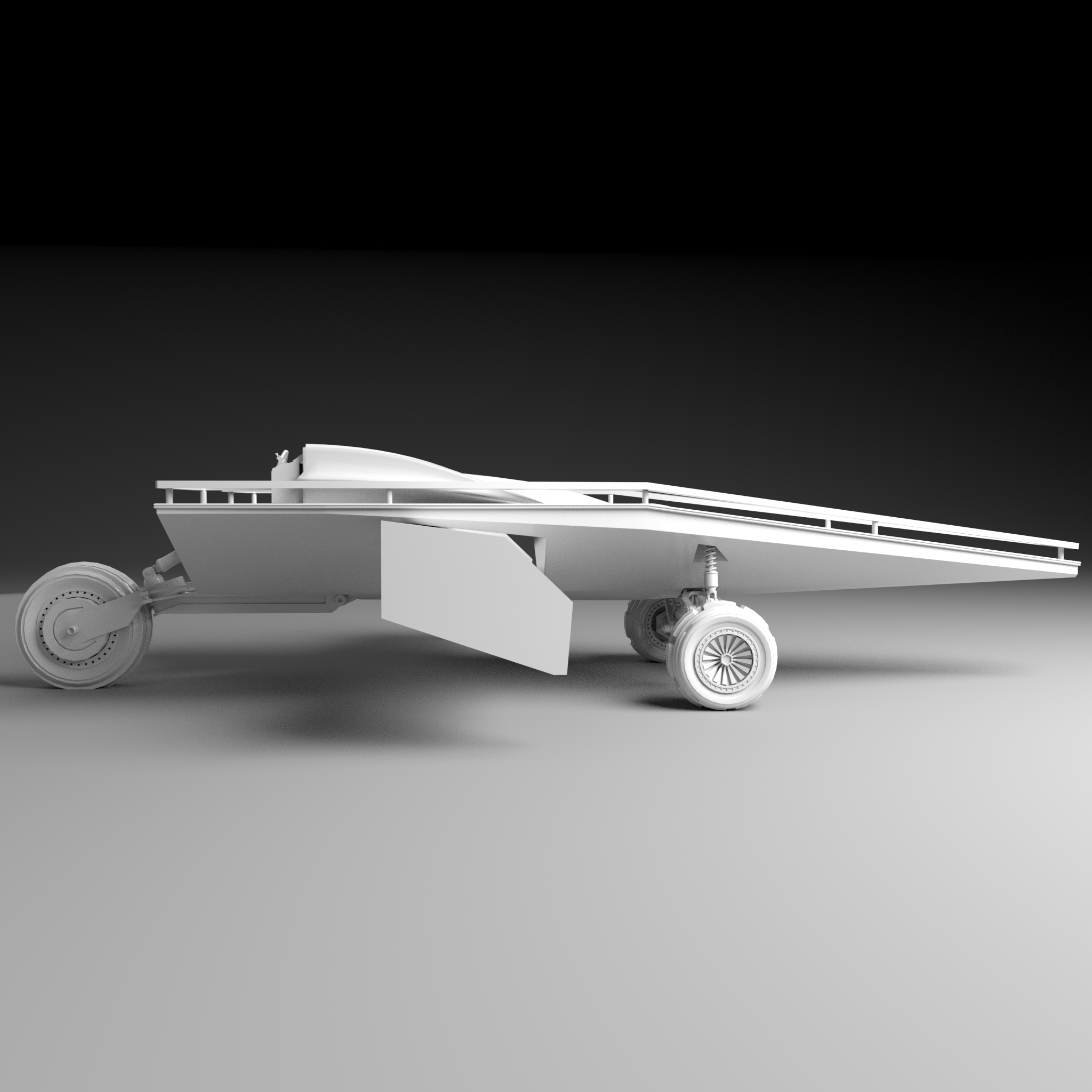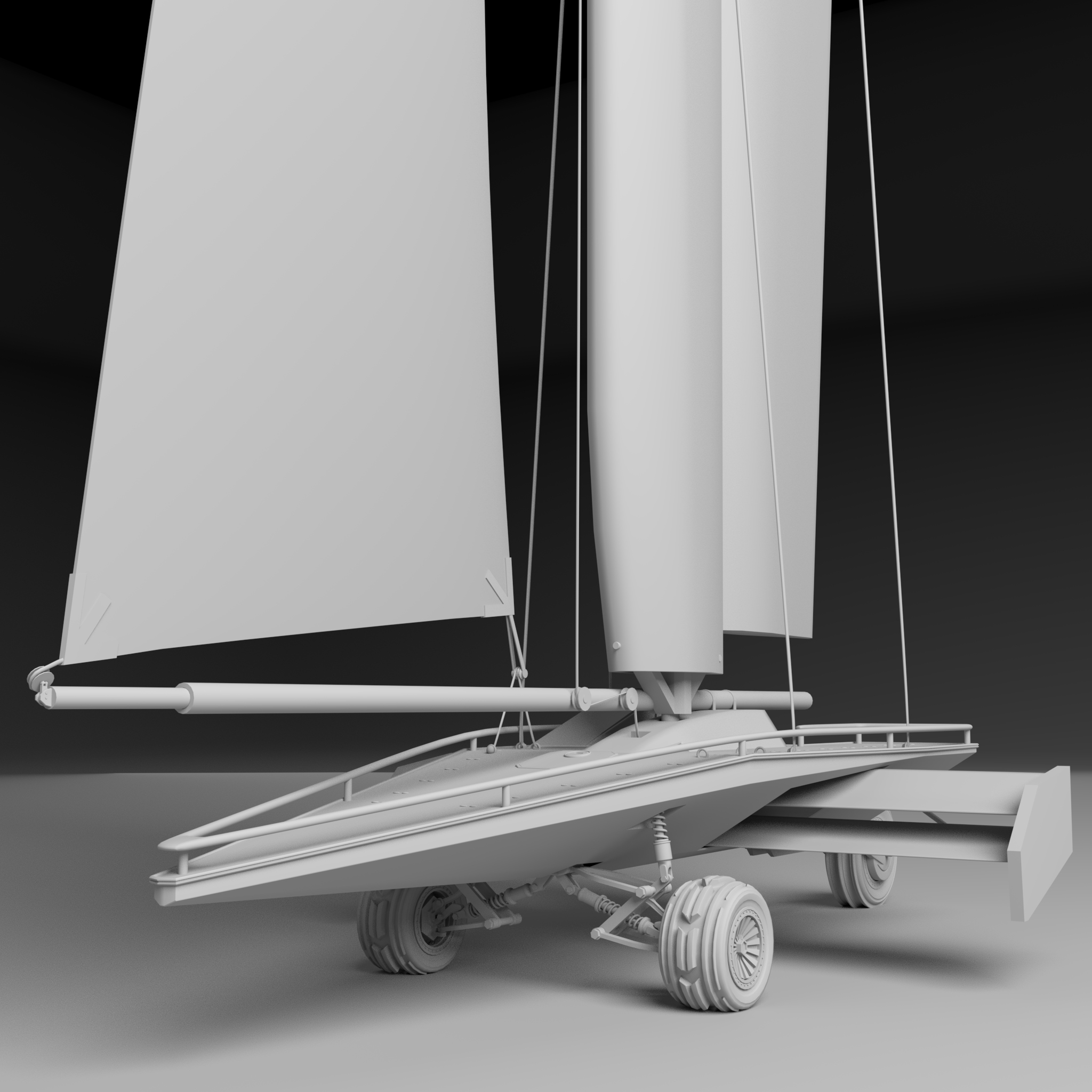 The sand runner is a sail powered car used in the sandy desert dunes. It uses a wing sail to generate it's momentum and uses it's resultant force to generate lift and prevent the craft from flipping over. It also makes use of an inverse airfoil wing to generate downforce which aids in its stability. At the front is two wheels with a custom designed di-axial pushrod suspension for lateral and vertical shock absorption. The rear wheel, along with the articulating wing sail, are used to steer. It is designed to be piloted by a single occupant but can hold up to ten on its top deck.